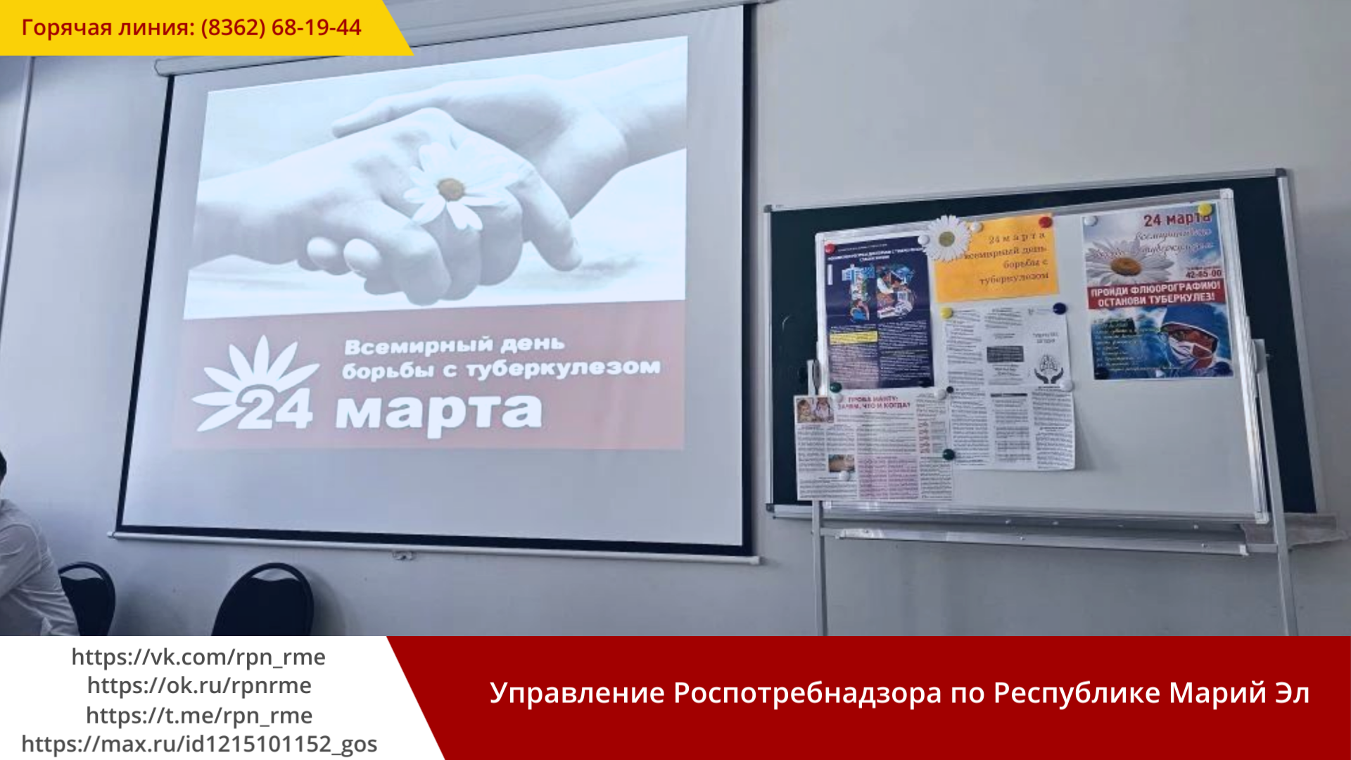 24 марта в ГБПОУ Республики Марий Эл «Йошкар-Олинский медицинский колледж» проведена Х Республиканская научно-практическая конференция, посвященная Всемирному дню борьбы с туберкулезом. Доклад о ситуации по заболеваемости туберкулезом в регионе представила ведущий специалист-эксперт отдела эпидемиологического надзора Управления Роспотребнадзора по Республике Марий Эл Наталья Маркина.
